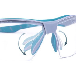 wewnętrzna strona okularów ochronnych oraz noski są całkowicie pogumowane. Zapewnia to nadzwyczaj nieślizgające się dopasowanie.