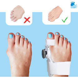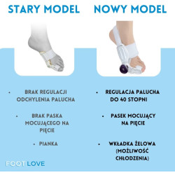 Zastosowane pokrętło (system typu BOA) pozwala z milimetrową dokładnością dostosować stopień odwiedzenia palucha. Dodatkowy pasek na piętę stabilizuje całość, a żelowa wkładka chłodząca przynosi ulgę w bólu.