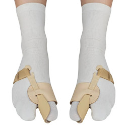 Wiele osób rezygnuje z noszenia szyn korekcyjnych z powodu dyskomfortu lub otarć. Skarpetki Tabi rozwiązują ten problem! Załóż je na noc, a na nie zapnij aparat korekcyjny. Materiał oddzieli skórę od plastikowych i skórzanych elementów aparatu, zapewniając miękkość i ciepło przez całą noc, nie zaburzając działania korektora.