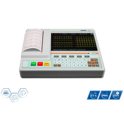 Elektrokardiograf ASPEL ECG ORANGE v.07.105W - jest 1, 3, 6, 12 kanałowym aparatem umożliwiającym wykonywanie elektrokardiogramu w pełnym zakresie 12 odprowadzeń. Przeznaczony jest do wykonywania badań EKG dorosłych i pediatrycznych pacjentów we wszystkich placówkach służby zdrowia przez przeszkolony personel. Zapis badania odbywa się w trybie ręcznym lub automatycznym z możliwością wykonania analizy i interpretacji. Aparat może być zasilany z sieci o napięciu 100V - 240V lub z wewnętrznego akumulatora.