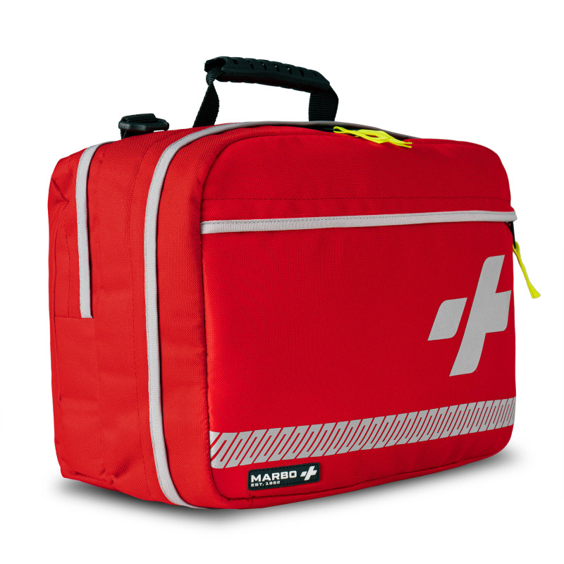 Całość torby uzupełniają elementy odblaskowe, które znacząco poprawiają widoczność ratownika w nocy.