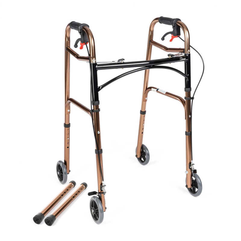 Balkonik czterokołowy z hamulcami JMC-C 3223 firmy Timago jest sprzętem pomocniczym, przeznaczonym dla osób o obniżonej sprawności ruchowej, które potrzebują stabilnego podparcia i asekuracji podczas chodzenia. Zalecany jest także dla osób starszych, jako pomoc w utrzymaniu równowagi, poprawy komfortu poruszania się i zapewnienia bezpieczeństwa przed upadkiem. Zastosowanie balkonika wpływa również pozytywnie na powrót do aktywności osób ze schorzeniami kończyn dolnych, mających problemy z lokomocją lub pionizacją.