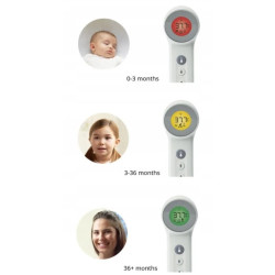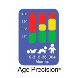 Definicja gorączki zmienia się razem z wiekiem. Można ustawić wiek by doprecyzować ocenę temperatury u całej rodziny. Rodzice już nie muszą się domyślać jaka temperatura jest normą a jaka oznaką choroby. Ekran podświetla się na: zielono- gdy temperatura jest normalna, na żółto- gdy wystąpiła gorączka, na czerwono- gdy gorączka jest wysoka.