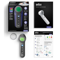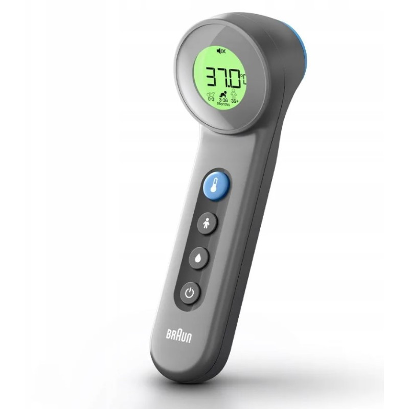 Ponadto w trybie bezdotykowym czujnik zbliżeniowy wskazuje prawidłową pozycję termometru, by wynik pomiaru był jak najdokładniejszy. Położenie termometru i jego odległość od czoła są bardzo ważne w przypadku odczytu temperatury metodami nieinwazyjnymi. Dba o to opracowany przez Braun system wskazujący poprawne ustawienie termometru. Duży wyświetlacz ze zmiennym kolorem podświetlenia dodatkowo ułatwia interpretację wyniku pomiaru.