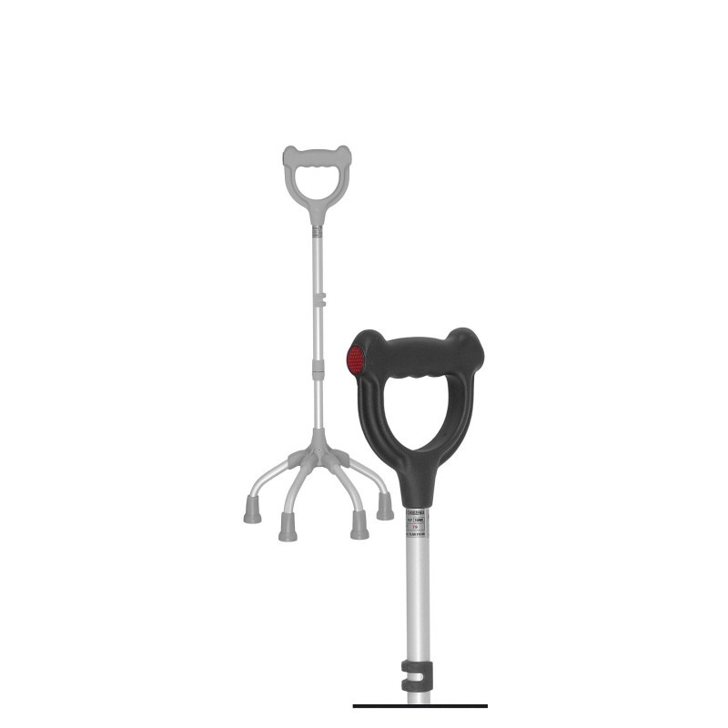 Czwórnóg z uchwytem laski do chodzenia 16/MR.L Mikirad to zaawansowana pomoc w utrzymaniu mobilności, zaprojektowana z myślą o osobach wymagających maksymalnej stabilizacji podczas chodzenia.