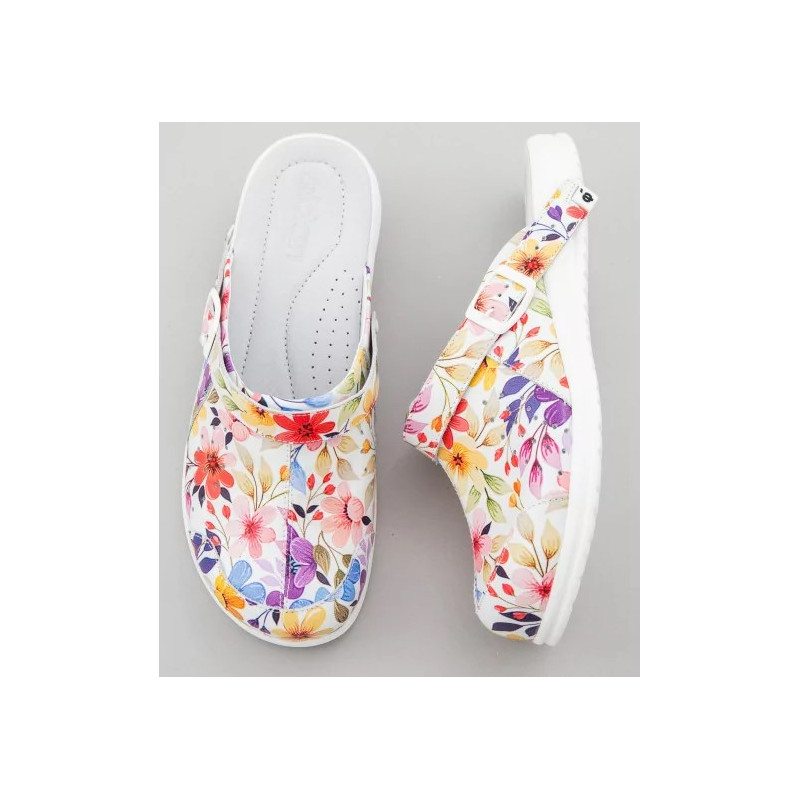Obuwie medyczne ze skóry, model KD MED 101 posiada pasek który, można w zależności od upodobań przełożyć na piętę lub na cholewkę.