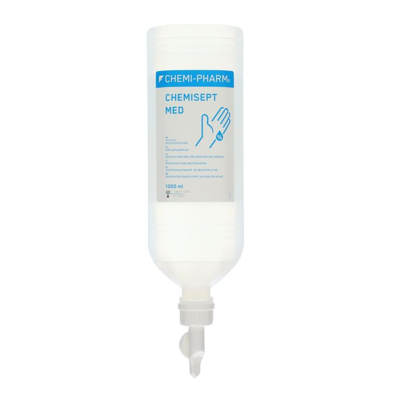 Chemisept Med w składzie zawiera alkohol etylowy i izopropylowy oraz substancje pielęgnujące skórę, tak dobrany skład zapewnia optymalne warunki dezynfekcji, może być stosowany do bardzo wrażliwej i podatnej na alergie skóry. Preparat jest przeznaczony do dezynfekcji nieuszkodzonej i niezmienionej chorobowo skóry.