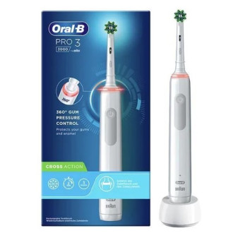 Szczoteczka Oral-B Pro3 3000 dostarczana jest z jedną końcówką CrossAction, która idealnie dopasowuje się do kształtu każdego zęba, usuwając płytkę nazębną oraz delikatnie eliminując przebarwienia.