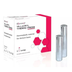 Villacryl Thermo Press to tworzywo termoplastyczne na bazie poliamidu. Jest dedykowane do wszystkich protez osiadających takich jak: protezy całkowite, częściowe, mikroprotezy, a także elementy retencyjne w protezach szkieletowych, szyny retencyjne oraz utrzymywacze przestrzeni.