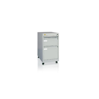 Kontenerek przybiurkowy KB/3 to niezbędne wyposażenie w placówkach medycznych, szpitalach i przychodniach. Jest funkcjonalnym i komfortowym rozwiązaniem w biurze, placówkach medycznych. Trzyszufladowy kontener przybiurkowy na kółkach wyposażony jest w piórnik oraz dwie szuflady. Jedna z szuflad przystosowana jest do przechowywania teczek zawieszkowych formatu A4.