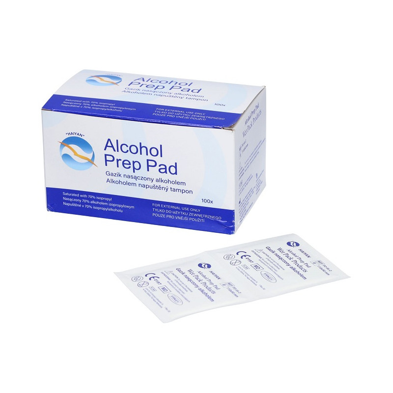 Nasączone alkoholem izopropylowym gaziki włókninowe.