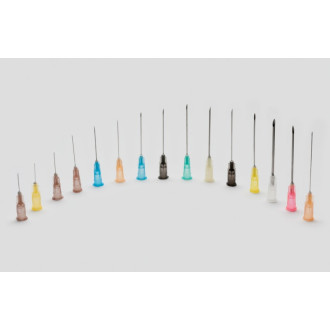 • transparentne nasadki, barwione zgodnie z kodem ISO, ułatwiające szybkie rozpoznanie rozmiaru igły
