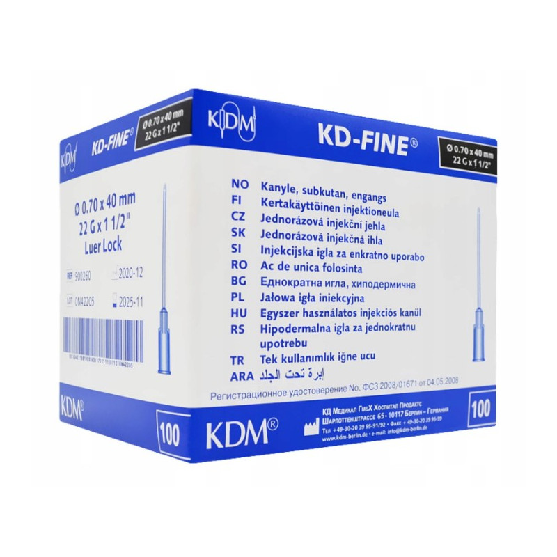 IGŁY INIEKCYJNE KD FINE 0.7x40mm G22 100szt KD MEDICAL
