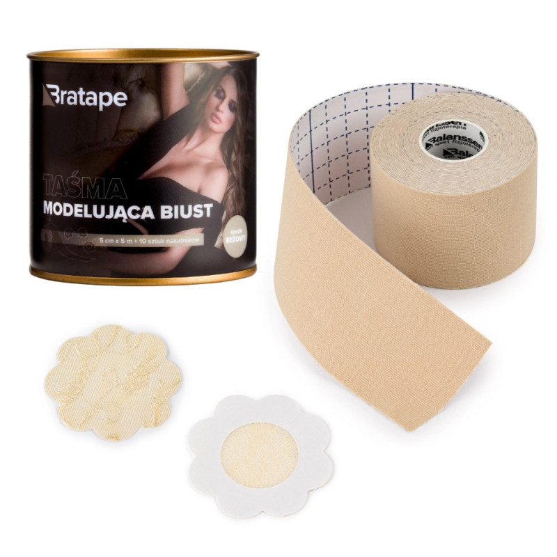 Taśma modelująca biust Bratape to wyrób medyczny, który pozwala na zmianę profilu i ułożenia piersi. Jej używanie jest bardzo proste i nie wymaga noszenia stanika, również w przypadku osób o biuście w większym rozmiarze. Możliwość dowolnego jej zamocowania umożliwia indywidualne dostosowanie zastosowania taśmy do konkretnych potrzeb.