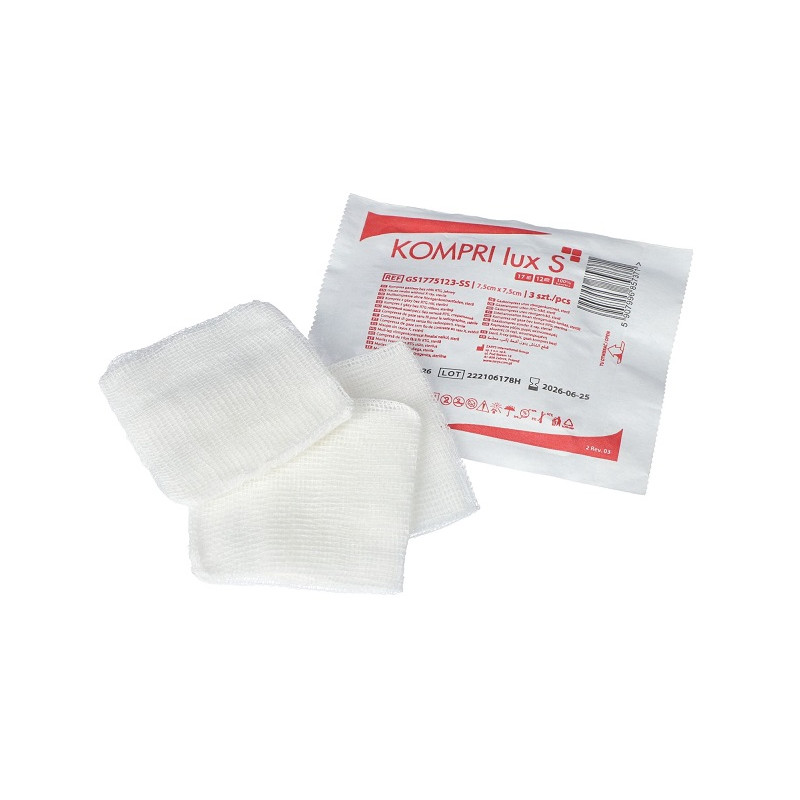 KOMPRI LUX S sterylny kompres z gazy 7,5x7,5 17N12W blister a'3