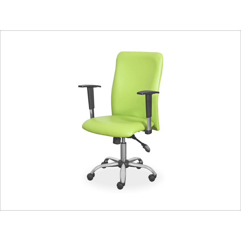 Fotel lekarski przybiurkowy oparty na stabilnej, pięcioramiennej podstawie ze stali chromowanej wyposażonej w kółka. Wyposażony jest w oparcie pleców i obrotowe siedzisko z regulacją wysokości przy pomocy sprężyny gazowej dźwignią pod siedziskiem oraz w obustronne podłokietniki z regulacją wysokości wykonane z tworzywa sztucznego z rdzeniem ze stali chromowanej. Oparcie i siedzisko fotela wypełnione jest pianką PU i obszyte atestowanym materiałem tapicerskim w kolorze do wyboru z palety producenta. Fotel posiada w podstawie 5 kółek kierunkowych (skrętne) o średnicy 50 mm.