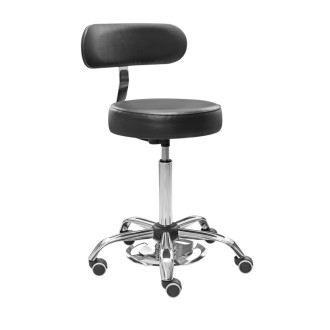 Taboret wyposażono w tapicerowane oparcie, którego wysokość można regulować.
