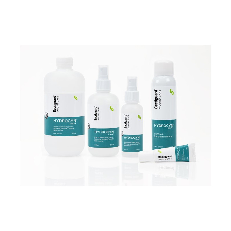 Bactiquard Wound Care Spray (poprzednia nazwa - Hydrocyn aqua) jest preparatem o właściwościach bakteriobójczych, sporobójczych i grzybobójczych do odkażania i oczyszczania przewlekłych ran w stadium I-IV, wrzodów, obrzęków żylnych i owrzodzeń cukrzycowych, ran pooperacyjnych, oparzeń 1 i 2 stopnia a także odleżyn.