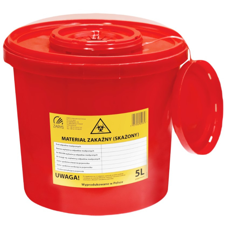 Pojemnik przeznaczony jest do zbierania stałych, niebezpiecznych odpadów medycznych takich jak igły, kaniule dożylne, strzykawki, rękawiczki jednorazowego użytku i inne. Umożliwia bezpieczne składowanie, transport i utylizację odpadów medycznych, zapewniając bezpieczeństwo pod względem norm higieniczno-sanitarnych jak i bezpieczeństwo mechaniczne zapobiegając niepożądanym zdarzeniom takim jak zakłucia i skaleczenia w czasie wyrzucania ostrych odpadów u personelu medycznego.
