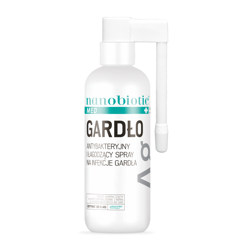 Nanobiotic® MED Silver Gardło to oczyszczający spray na infekcje gardła o działaniu antybakteryjnym i przeciwgrzybiczym. Preparat wykazuje najwyższą skuteczność dzięki innowacyjnemu połączeniu działaniu srebra, złota i miedzi aXonnite®. Wielokierunkowo i szybko pomaga zwalczać infekcje.