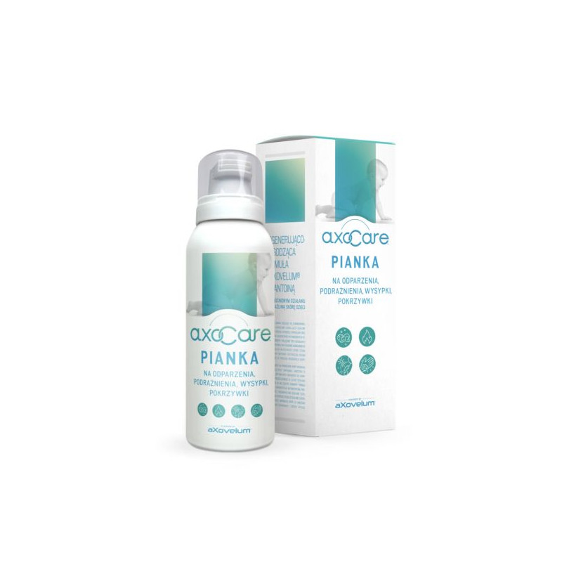 Pianka AXOCARE™ bazuje na innowacyjnej formule aXovelum®, łączącej działanie chitozanu oraz cząstek metali szlachetnych aXonnite®. Tworzy na powierzchni uszkodzonej skóry naturalną błonę, która zapewnia intensywne i trwałe działanie odbudowujące skórę. Hydrożelowa formuła wzmacnia antybakteryjne właściwości srebra, regenerujące złota i przeciwgrzybicze miedzi. Chroni uszkodzoną skórę przed wtórnym zakażeniem. Przeznaczona do regeneracji podrażnionej skórę oraz do zmniejszenia zaczerwienienia. Formuła stworzona, aby przywracać elastyczność oraz niwelować uczucie ściągania i napięcia skóry. Składniki preparatu wykazują działanie przeciwzapalne i łagodzące ból.
