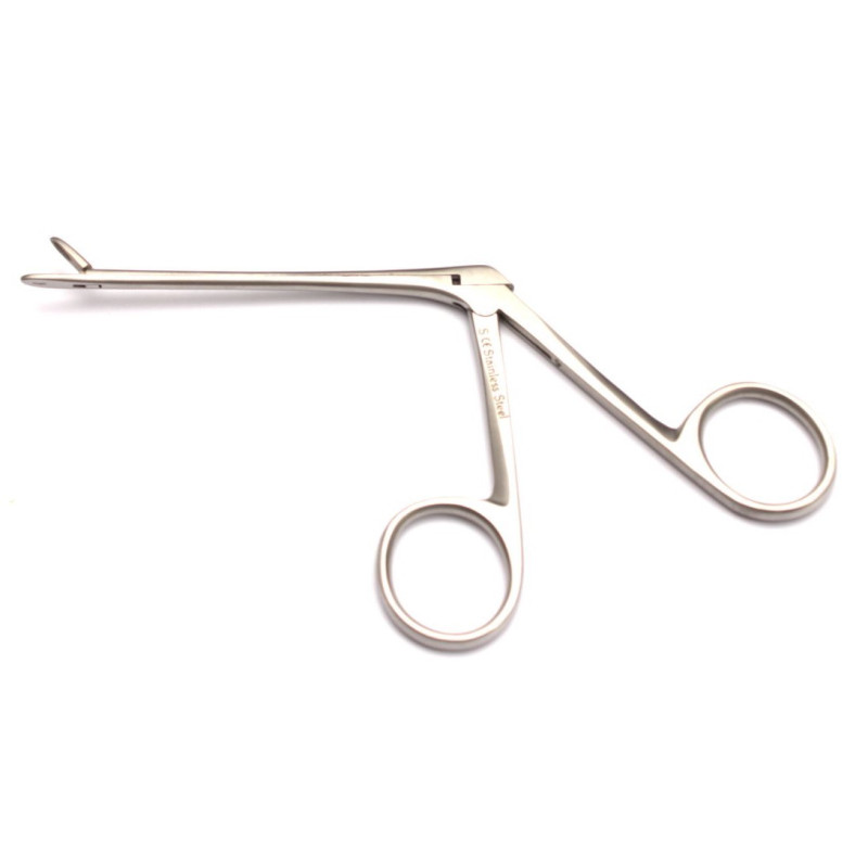 Narzędzie laryngologiczne zostało wykonane z wysokiej jakości stali nierdzewnej, co gwarantuje odporność na korozję i wydłuża żywotność kleszczy.