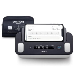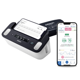OMRON Complete to walidowany klinicznie inteligentny domowy ciśnieniomierz i monitor EKG 2w1, który zapewnia łatwe, natychmiastowe i dokładne wyniki pomiarów ciśnienia i EKG.