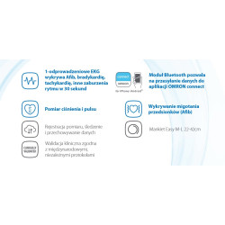 Wyniki pomiarów przesyłane są do bezpłatnej aplikacji OMRON connect, która bezproblemowo przechowuje wyniki i umożliwia bezpieczne udostępnianie ich lekarzowi.