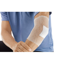 Wykonany z wiskozy i bawełny; elastyczny poprzecznie, chłonny, przepuszcza powietrze – nie zaburza naturalnych funkcji skóry; wygodny – dobrze dopasowuje się do opatrywanej części ciała; bezpieczny - nie uciska nadmiernie - nie ogranicza ruchów stawów; można go sterylizować.