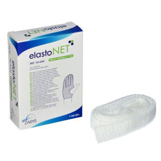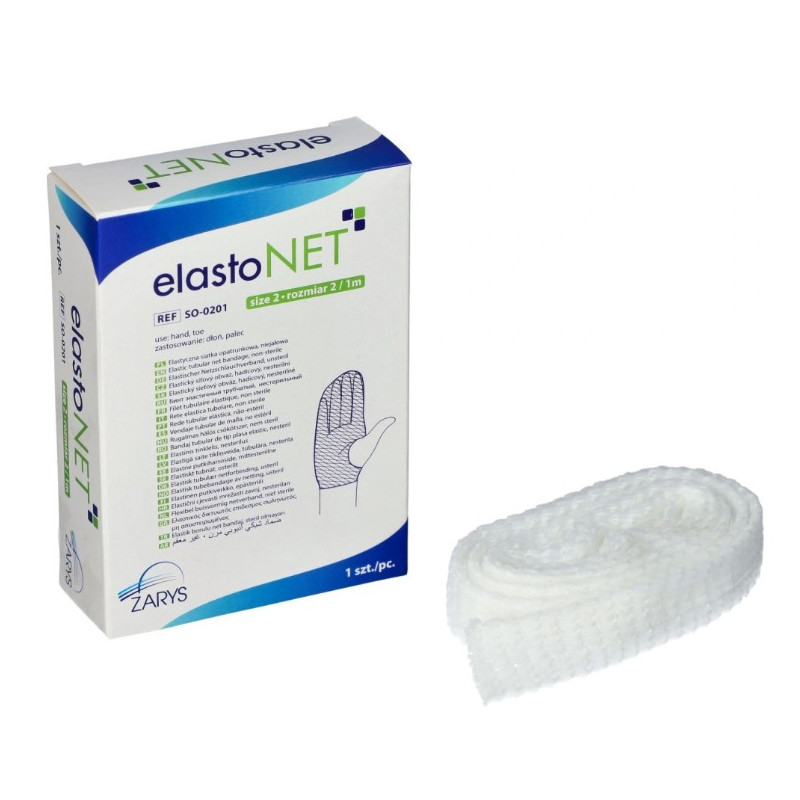 Elastyczna siatka opatrunkowa do przytrzymywania opatrunków w formie rękawa.