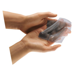 - Cienki, miękki i łatwy do układania materiał nośny zapewnia dobry kontakt z podłożem rany.