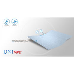 UniTape™ to technologiczny surowiec ortopedyczny, charakteryzujący się bardzo dużą wytrzymałością połączoną z dwustronną funkcją samoszczepną. UniTape™ jest surowcem bardzo cienkim, a jego dwustronnie szczepna funkcja pozwala na uniwersalne i łatwiejsze użytkowanie.