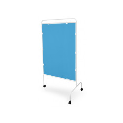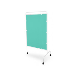 Każdy parawan medyczny zapewnia komfort i prywatność pacjentom przygotowującym się do badań i zabiegów, wydziela z przestrzeni ogólnej fragment konieczny do wykonania przez personel medyczny czynności przy jednym chorym. Ten jednoskrzydłowy parawan dzięki niewielkim rozmiarom szerokości skrzydła 94 cm znajdzie zastosowanie szczególnie w małych gabinetach lekarskich, o ograniczonej powierzchni. Ekran parawanu wykonany z nieprzejrzystej, białej płyty PCV jest łatwo zmywalny, a jego charakterystyczna, błyszcząca powierzchnia nadaje wnętrzu wrażenie sterylnej czystości. Konstrukcja parawanu wykonana jest z lekkich, metalowych profili malowanych lakierem proszkowym, o zwiększonej odporności na korozję i uszkodzenia mechaniczne. Podgumowane kółka pozwalają na swobodne przemieszczanie w zależności od aktualnych potrzeb użytkownika bezpiecznie, cicho, bez utraty stabilności.