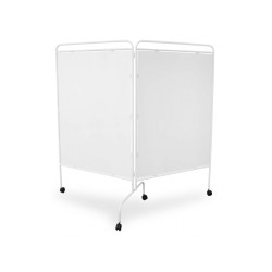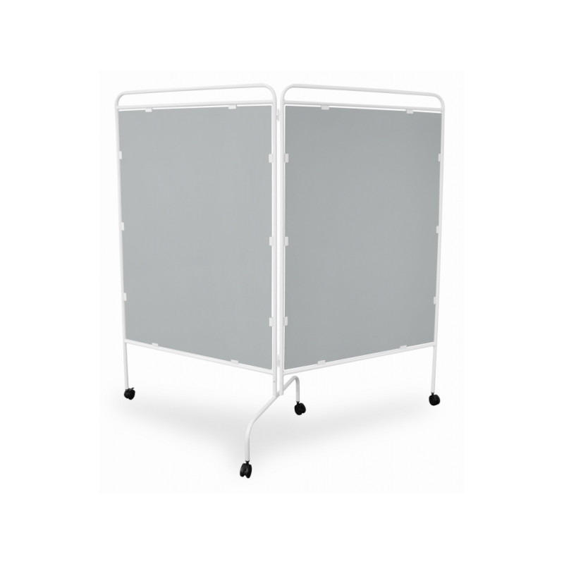 Każdy parawan medyczny zapewnia komfort i prywatność pacjentom przygotowującym się do badań i zabiegów, wydziela z przestrzeni ogólnej fragment konieczny do wykonania przez personel medyczny czynności przy jednym chorym. Ten dwuskrzydłowy parawan dzięki swym uniwersalnym rozmiarom znajdzie zastosowanie gabinetach lekarskich, w przychodniach medycznych i na oddziałach szpitalnych. Ekran parawanu wykonany z nieprzejrzystej, białej płyty PCV jest łatwo zmywalny, a jego charakterystyczna, błyszcząca powierzchnia nadaje wnętrzu wrażenie sterylnej czystości. Konstrukcja parawanu wykonana jest z lekkich, metalowych profili malowanych lakierem proszkowym, o zwiększonej odporności na korozję i uszkodzenia mechaniczne. Podgumowane kółka pozwalają na swobodne przemieszczanie w zależności od aktualnych potrzeb użytkownika bezpiecznie, cicho, bez utraty stabilności