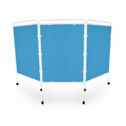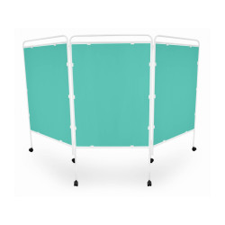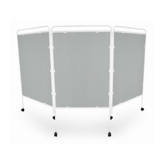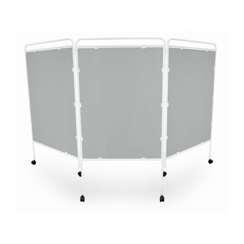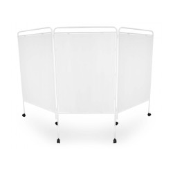 Każdy parawan medyczny zapewnia komfort i prywatność pacjentom przygotowującym się do badań i zabiegów, wydziela z przestrzeni ogólnej fragment konieczny do wykonania przez personel medyczny czynności przy jednym chorym. Ten trzyskrzydłowy parawan dzięki swym dużym rozmiarom znajdzie zastosowanie gabinetach lekarskich, w przychodniach medycznych i na oddziałach szpitalnych. Ekran parawanu wykonany z nieprzejrzystej, białej płyty PCV jest łatwo zmywalny, a jego charakterystyczna, błyszcząca powierzchnia nadaje wnętrzu wrażenie sterylnej czystości. Konstrukcja parawanu wykonana jest z lekkich, metalowych profili malowanych lakierem proszkowym, o zwiększonej odporności na korozję i uszkodzenia mechaniczne. Podgumowane kółka pozwalają na swobodne przemieszczanie w zależności od aktualnych potrzeb użytkownika bezpiecznie, cicho, bez utraty stabilności