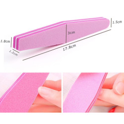Dzięki dwóm gradacjom (100 i 180) jest to produkt uniwersalny – służy zarówno do obróbki twardej masy żelowej lub akrylowej, jak i do nadawania kształtu naturalnej płytce oraz jej matowienia przed nałożeniem hybrydy.
