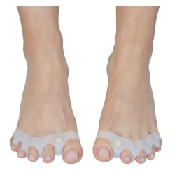 Separator skutecznie rozdziela wszystkie palce stóp, wymuszając ich prawidłowe ułożenie i redukując napięcia wywołane noszeniem obcisłego obuwia. Jest to idealne rozwiązanie do stosowania w domowym zaciszu, podczas odpoczynku lub zabiegów pedicure.