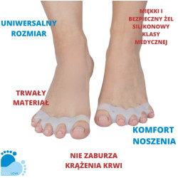 Separator jest przeznaczony do stosowania poza obuwiem (ze względu na duży zakres rozdzielenia palców).