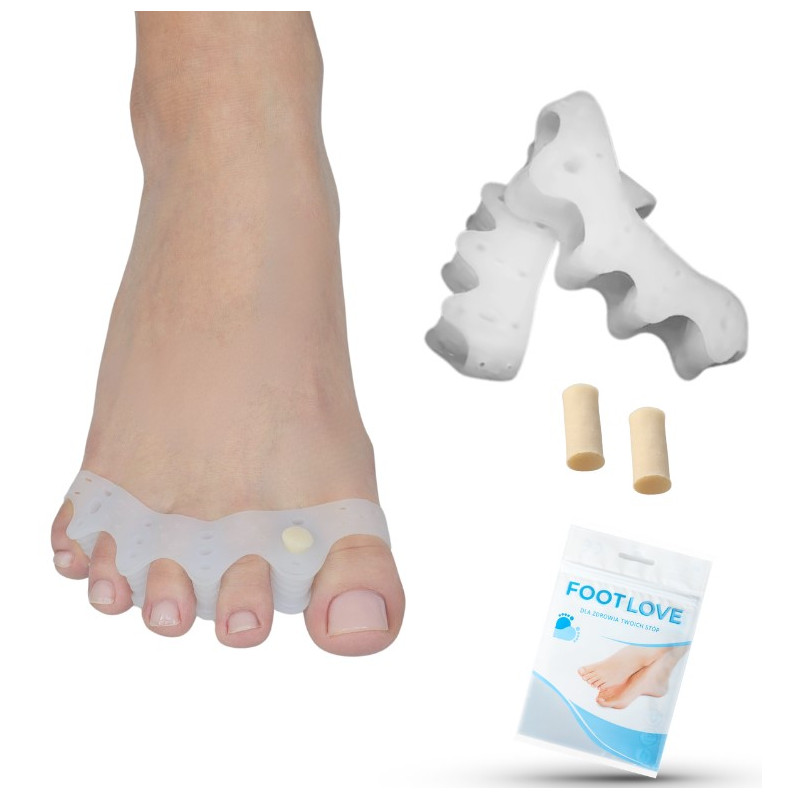 Intensywna separacja: Kliny międzypalcowe skutecznie izolują nachodzące na siebie palce, przywracając im naturalne ułożenie.