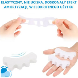 Pełna separacja: Skutecznie oddziela od siebie wszystkie palce, zapobiegając ich wzajemnemu uciskowi.