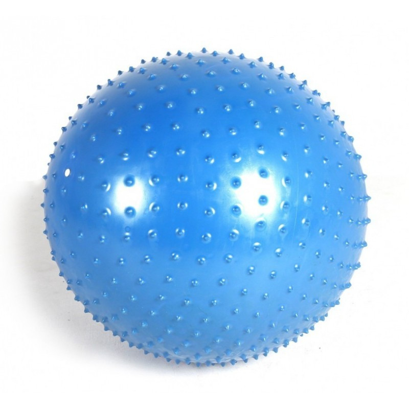 Piłka do rehabilitacji, masująca. Przeznaczona do wykonywania ćwiczeń podczas procesu rehabilitacji, jak również ćwiczeń ogólnorozwojowych. Wyposażona jest w miękkie wypustki zapewniające ciągły masaż podczas ćwiczeń oraz stymulujące receptory skórne.