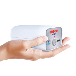 Czy kiedykolwiek zdarzyła się Tobie sytuacja, że musiałeś użyć inhalatora w miejscu publicznym? Poza twoim prywatnym mieszkaniem? Jeżeli tak to ten model inhalatora został stworzony specjalnie dla Ciebie. Jego małe gabaryty, lekka waga sprawiają, że staje się bardzo poręczny. Atutem Medel Smart jest jego akumulator, który możemy ładować poprzez standardową ładowarką służącą do ładowania telefonu komórkowego (mini USB). Inhalator został wyposażony w dwie diody, czerwoną oraz niebieską. Czerwona informuje nas, że musimy podłączyć urządzenie do ładowania, z kolei niebieska informuje o tym, że bateria jest naładowana.