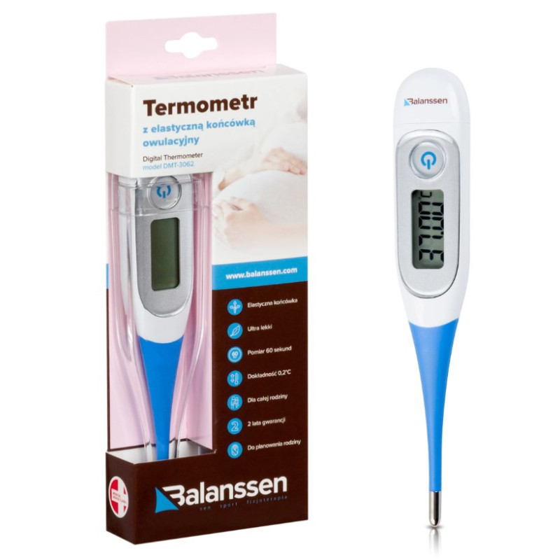 Wyjątkowo lekki i cichy termometr dla całej rodziny. Jego miękka końcówka umożliwia pomiar temperatury pod pachą, w ustach (pod językiem) lub w odbycie pacjenta. Jest to model wspomagający planowanie rodziny – jako termometr owulacyjny.