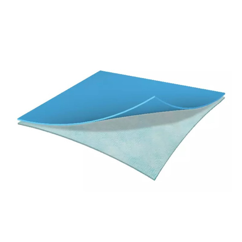 Dwuwarstwowy materiał składający się z folii polietylenowej odpornej na rozdarcie oraz wykonany z absorbującej włókniny polipropylenowej.