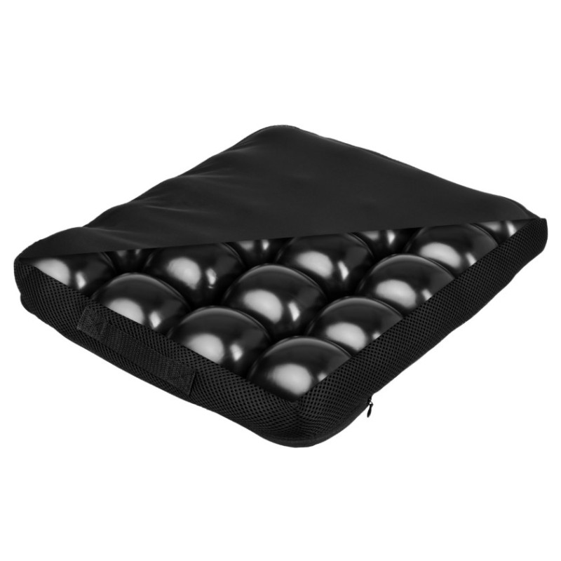Poduszka przeciwodleżynowa - BUBBLE EXCLUSIVE - Przeciwodleżynowa poduszka pneumatyczna należy do sprzętów pomocniczych przeznaczonych dla osób narażonych na ryzyko powstawania odleżyn. Stosowana jest u osób długotrwale przebywających w pozycji siedzącej, u których występują zaburzenia przepływu krwi w obwodowym układzie krwionośnym. Wykorzystywana jest w profilaktyce przeciwodleżynowej oraz w leczeniu odleżyn do I stopnia (wg NPUAP / EPUAP). Nie stosować na gołe ciało. Przed zastosowaniem skonsultować się z lekarzem, rehabilitantem lub fizjoterapeutą.