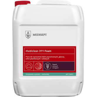 Gotowy do użycia preparat w formie pianki do mycia kabin prysznicowych, brodzików, osłon plastikowych i szklanych oraz armatury łazienkowej i kuchennej. Preparat ma doskonałe właściwości usuwania kamienia wapiennego, rdzy, nalotów z mydła oraz tłustego brudu. Mytym powierzchniom nadaje przyjemny zapach i nieskazitelny wygląd. Posiada właściwości antybakteryjne. Może być używany przed lub po zastosowaniu środków dezynfekcyjnych.