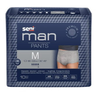 Majtki Seni ManPants pozwalają skórze swobodnie oddychać. Nie zawierają lateksu, dlatego są bezpieczne nawet dla wrażliwej skóry. Wykonano je z miękkiego, nieszeleszczącego materiału, który doskonale dopasowuje się do męskiej anatomii. Posiadają dodatkowe osłonki boczne, które zapobiegają wyciekom.