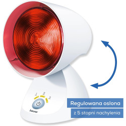 Lampa lecznicza emituje ciepło równomiernie, co zapewnia komfort i bezpieczeństwo. Klosz można ustawić pod pięcioma różnymi kątami - skieruj ciepło dokładnie tam, gdzie tego potrzebujesz.
