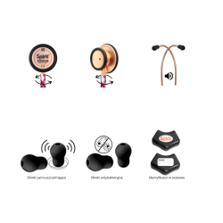 Sprężyna dociskająca słuchawki znajduje się wbudowana w wewnątrz przewodu. Stanowi to ułatwienie jeżeli chodzi o codzienną dezynfekcję stetoskopu. Internistyczny stetoskop CK-S601PF Rose Gold Satin Camouflage posiada głowicę w wybarwieniu Rose Gold White Shining. Wysoka jakość akustyki przekłada się na maksymalnie wysoki komfort użytkowania.