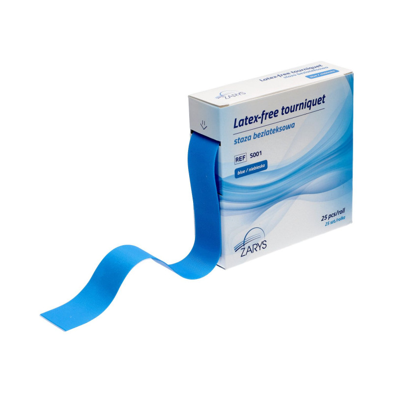 Staza gumowa bezlateksowa uciskowa wykonana z szerokiego rozciągliwego paska gumy syntetycznej. Bezlateksowy materiał chroni przed reakcjami alergicznymi i podrażnieniami skóry posiada wysoką wytrzymałość na rozciaganie. Stosowna do ucisku żyły przy pobieraniu krwi. Opakowanie umożliwia wygodne dzielenie preferowanych opasek. Opaski są jednorazowe więc ograniczają możliwość zakażenia.